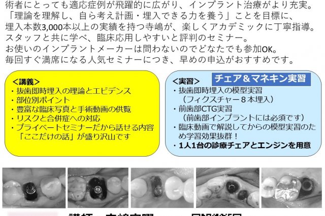 - <9期生>抜歯即時埋入を習得したい先生、審美領域インプラントを安心して行いたい先生向けセミナー